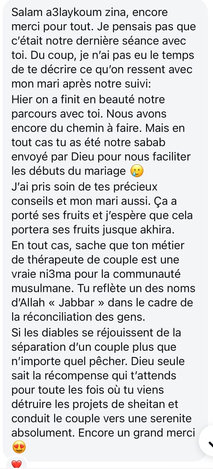 Zina accorde une place essentielle à la prévention et à l’éducation, convaincue que le bien-être intime fait partie intégrante de l’équilibre personnel et conjugal.